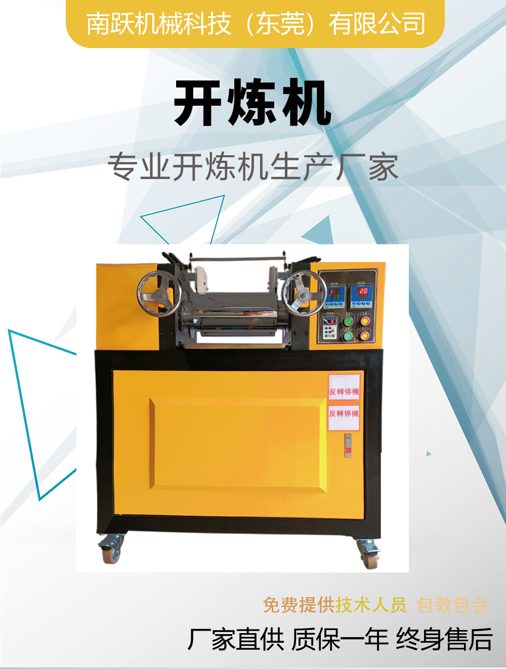 南跃机械科技(东莞)有限公司是一家致力于实验型,小型,开炼机,压片机,硫化机,流延机,吹膜机,造粒机,密炼机,注塑机等橡塑设备的源头生产厂家