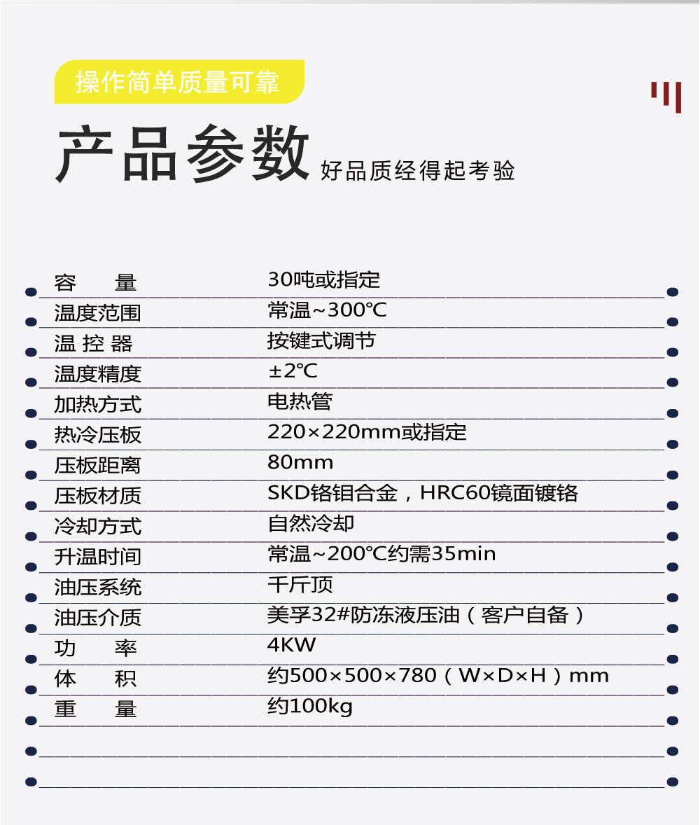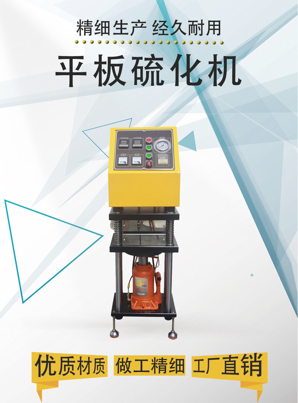平板硫化机其主要功能是将原料置于模具内,夹于本机电热板中间,加以温度及压力,使其成型,以供后续实验,作为工厂大批量生产配料之依据。符合标准:CNS-4395