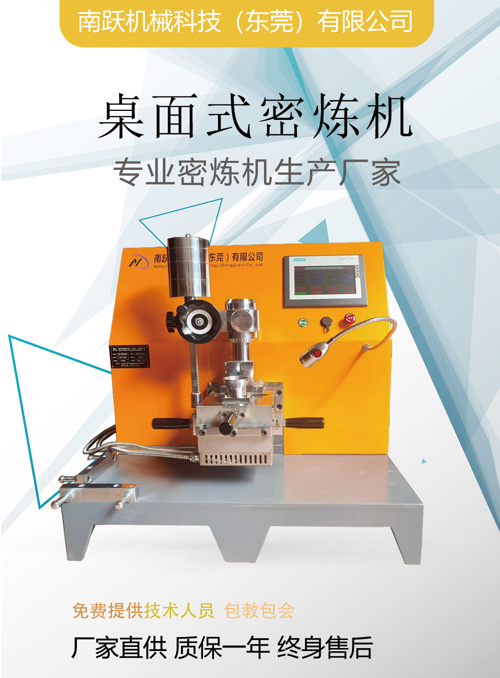 南跃机械科技(东莞)有限公司是一家致力于实验型,小型,开炼机,压片机,硫化机,流延机,吹膜机,造粒机,密炼机,注塑机等橡塑设备的源头生产厂家