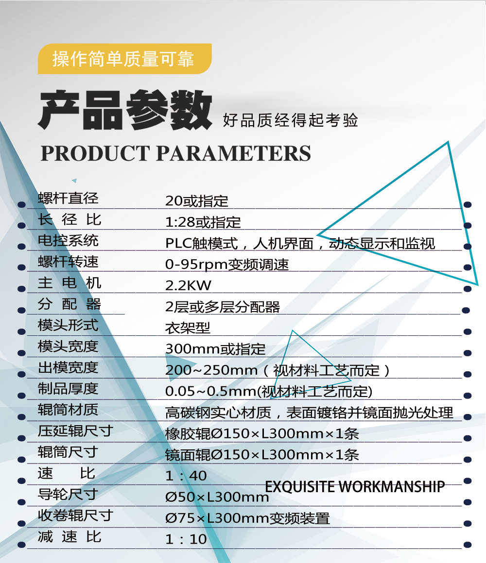 流延膜机组是一款面向橡塑材料流延薄膜制品成型的机械设备,主要是用于流延薄膜制品成型、流延成型材料性能研究等领域,如将材料通过螺杆输送至特定的模具内,通过牵引,冷却定型等方式得到所需制品。其最大的优点是轻巧实用,在使用过程中,流延辊及牵引辊的转速能通过变频电机进行控制,使得物料的输送速度可调,以制取满足用户要求的各种片材制品。