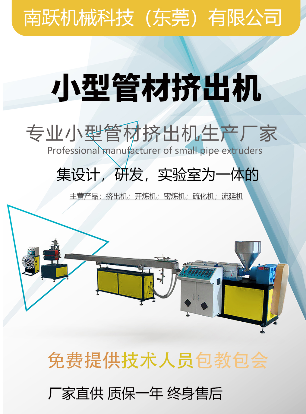 南跃机械科技(东莞)有限公司是一家致力于实验型,小型,开炼机,压片机,硫化机,流延机,吹膜机,造粒机,密炼机,注塑机等橡塑设备的源头生产厂家